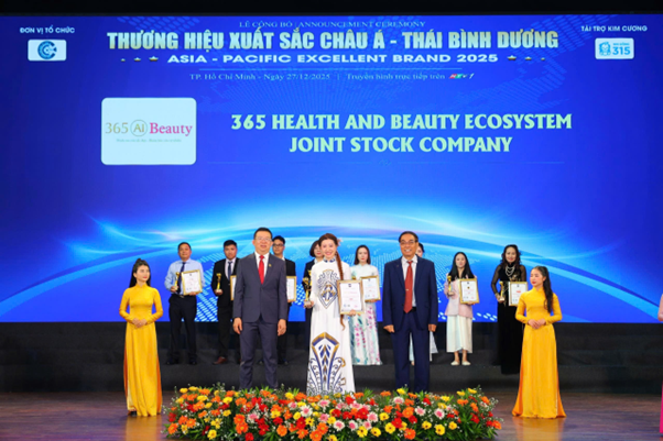 Ngày 27/12 vừa qua, trong buổi lễ trao giải “Thương Hiệu Xuất Sắc Châu Á Thái Bình Dương – ASIA PACIFIC EXCELLENT BRAND 2025” do Viện nghiên cứu Kinh tế Châu Á, phối hợp với Đài Truyền hình TP Hồ Chí Minh và các đơn vị tổ chức. Công Ty Cổ Phần Hệ Sinh Thái Khỏe Và Đẹp 365 đã vinh dự được vinh danh “Top 10 Thương Hiệu Tiêu Biểu Châu Á Thái Bình Dương 2025”.