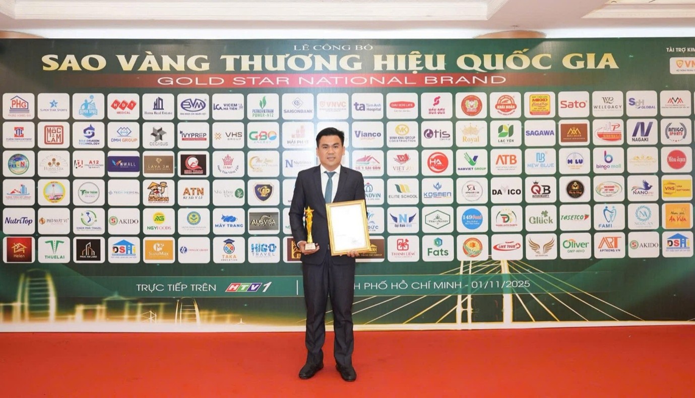 Ông Nguyễn Quốc Thắng – Giám đốc Kinh Doanh Khu vực Miền Nam đón nhận danh hiệu Top 5 Thương Hiệu Tin Dùng Quốc Gia 2025