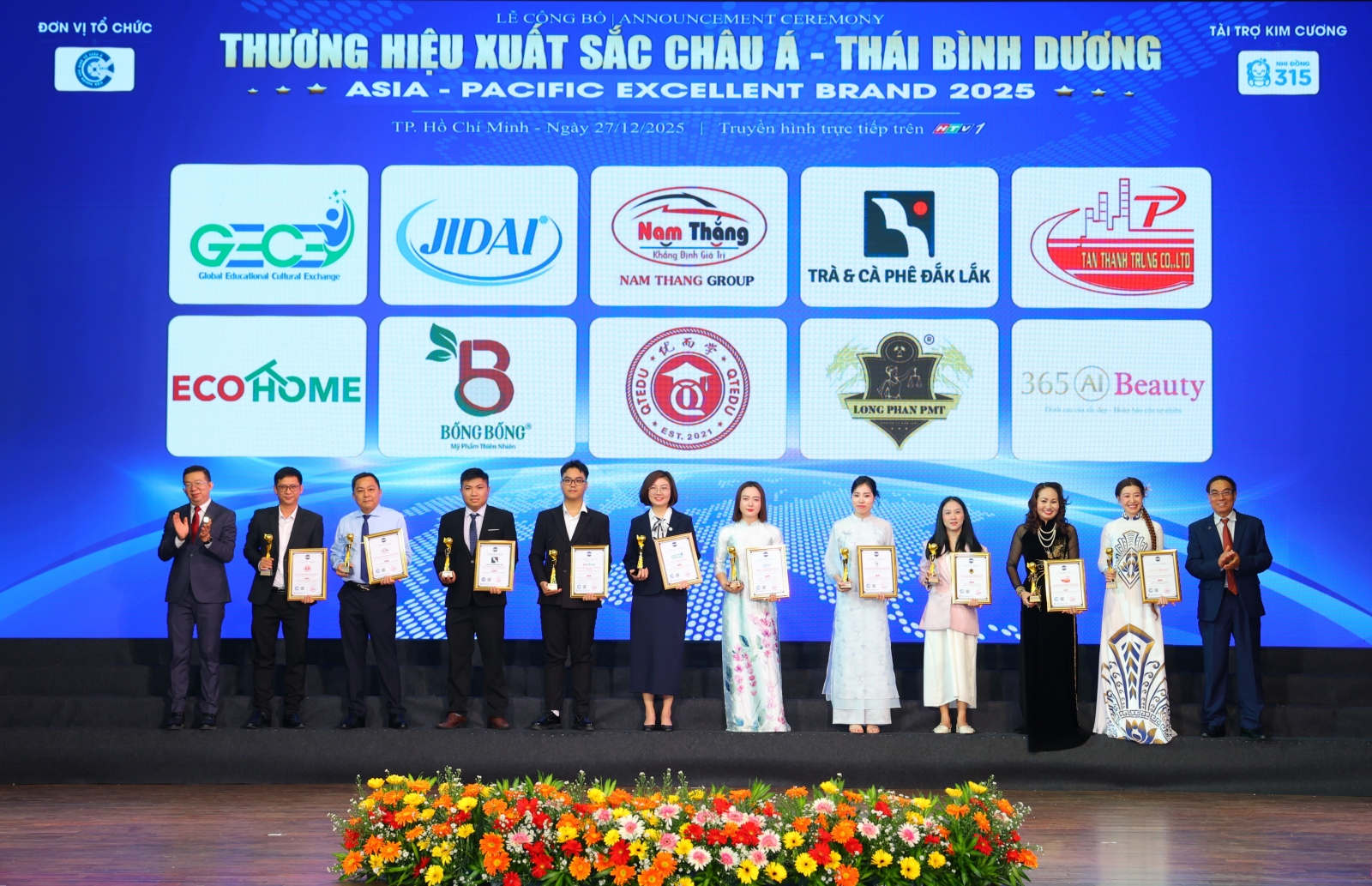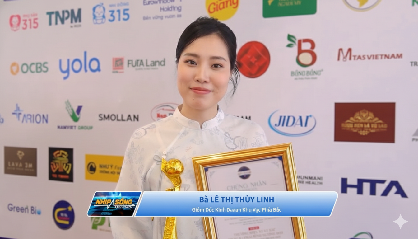 Đại diện thương hiệu nhận cúp vàng và chứng nhận Top 10 Thương hiệu xuất sắc Châu Á – Thái Bình Dương 2025