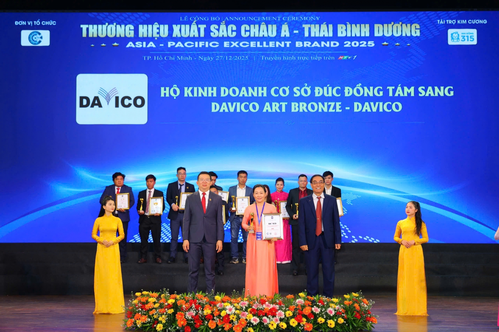 Một trong những dấu mốc nổi bật trong hành trình phát triển của DAVICO là ngày 27/12/2025, khi Hộ kinh doanh Cơ sở Đúc đồng Tám Sang – DAVICO Art Bronze – DAVICO vinh dự được xướng tên tại chương trình “Thương hiệu Xuất sắc Châu Á – Thái Bình Dương”. Đây là giải thưởng uy tín dành cho các thương hiệu tiêu biểu có đóng góp tích cực cho sự phát triển kinh tế – xã hội.