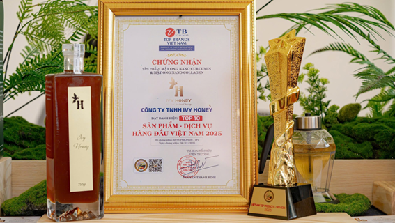Tháng 12/2025, tại Lễ công bố “VIETNAM TOP BRANDS 2025” lần thứ 7, Ivy Honey đã được vinh danh trang trọng trong Top “Sản phẩm - Dịch vụ hàng đầu Việt Nam”. Đó không chỉ là một danh hiệu, mà là “trái ngọt” cho hành trình hơn 20 năm Ivy Honey.