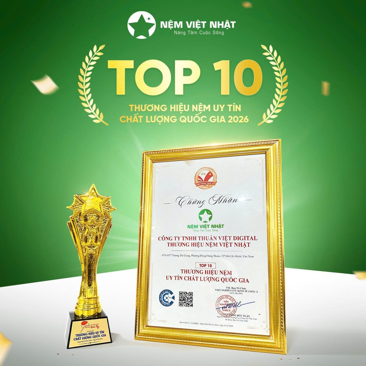 NỆM VIỆT NHẬT: KHẲNG ĐỊNH VỊ THẾ DẪN ĐẦU NẰM TRONG TOP 10 THƯƠNG HIỆU NỆM UY TÍN QUỐC GIA