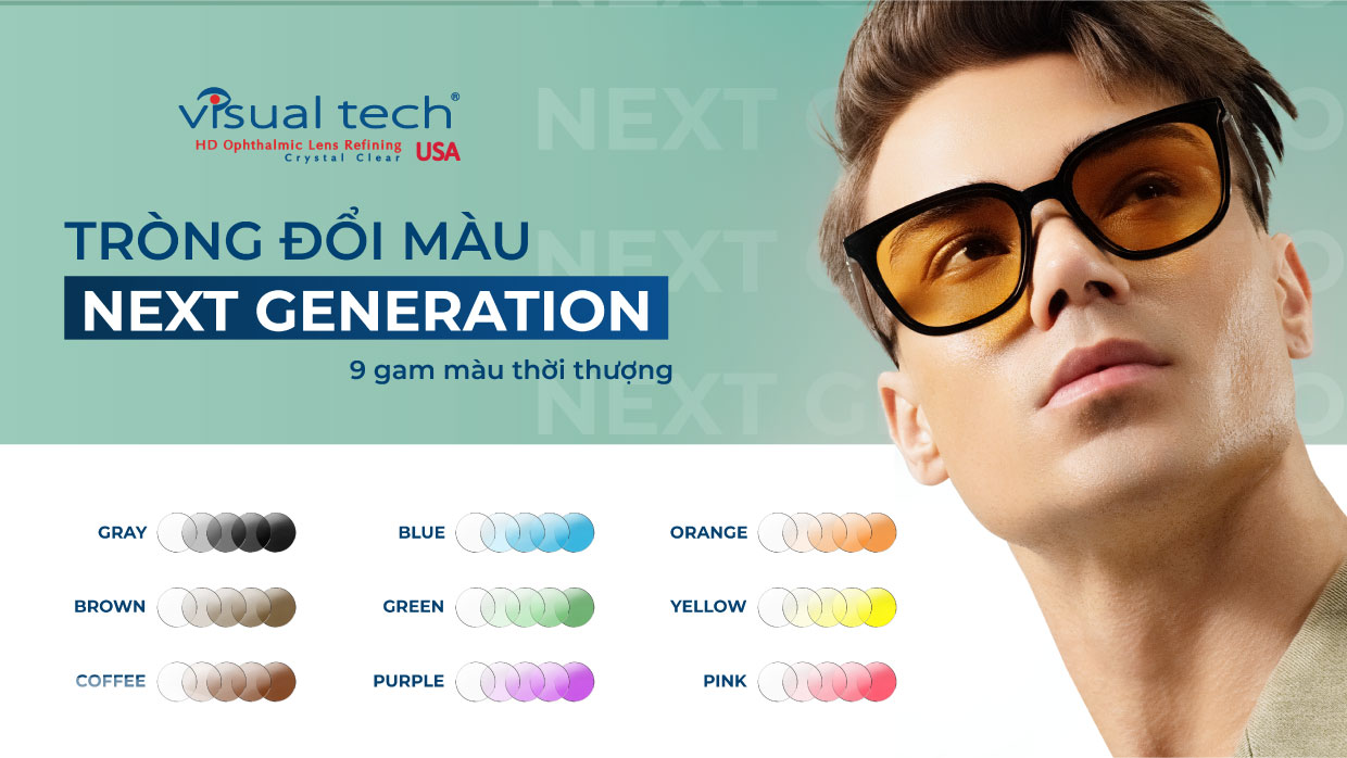 Bên cạnh đó, Visual Tech còn mang đến sản phẩm tròng kính đổi màu Freeform HD - Next Generation với 9 gam màu thời thượng, sẵn sàng trở thành giải pháp "2 trong 1" - vừa là kính gọng, vừa là kính mát cực tiện lợi. Visual Tech Freeform HD - Next Generation không chỉ hỗ trợ thị lực toàn diện nhờ công nghệ tinh nét Freeform HD cùng lớp phủ HMC+ tiên tiến mà còn đáp ứng mọi nhu cầu thẩm mỹ và phong cách cho người dùng.